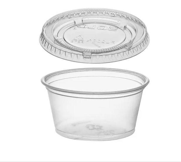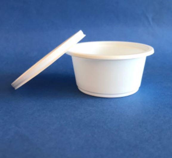 (PT) POCILLO PLASTICO CON TAPA 2 OZ VENTA X 100 UNIDADES