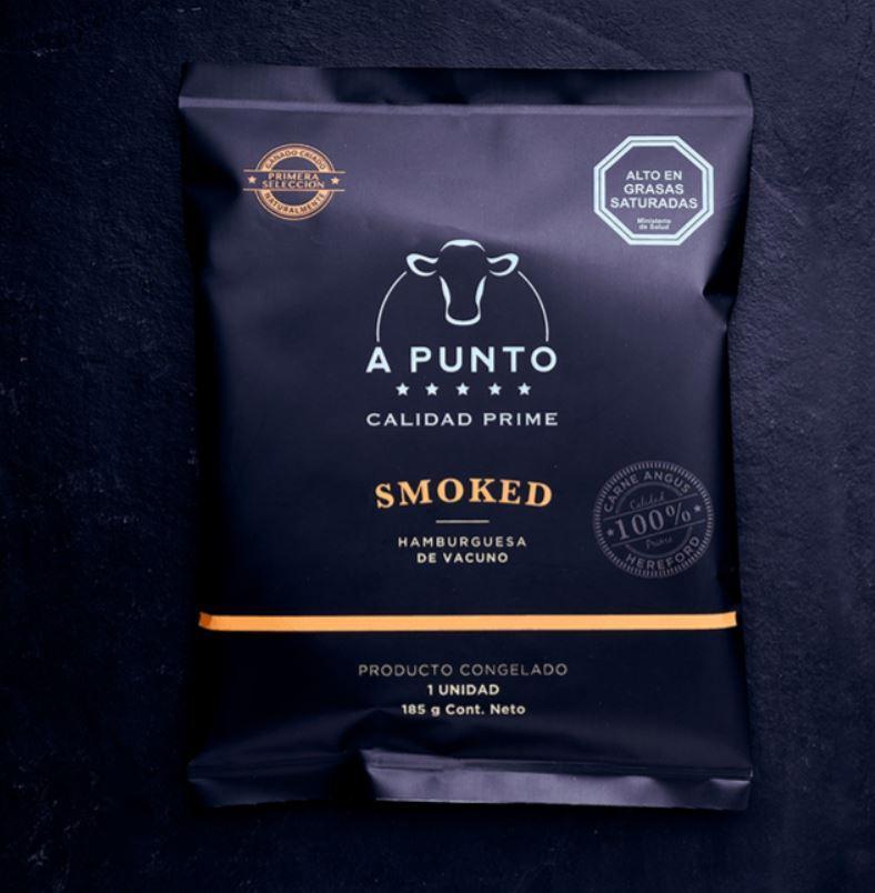 Hamburguesa a Punto Smoked 100% carne de Angus y Hereford A Punto Prime. Elaborada con el mejor corte de Tapapecho A Punto con deliciosos toques ahumados. Prepárala a la Parrilla, Horno, Sartén o Plancha.